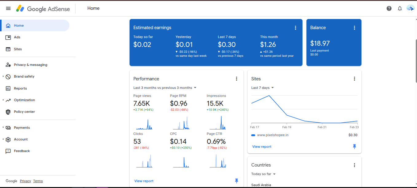 - AdSense Account Country: India