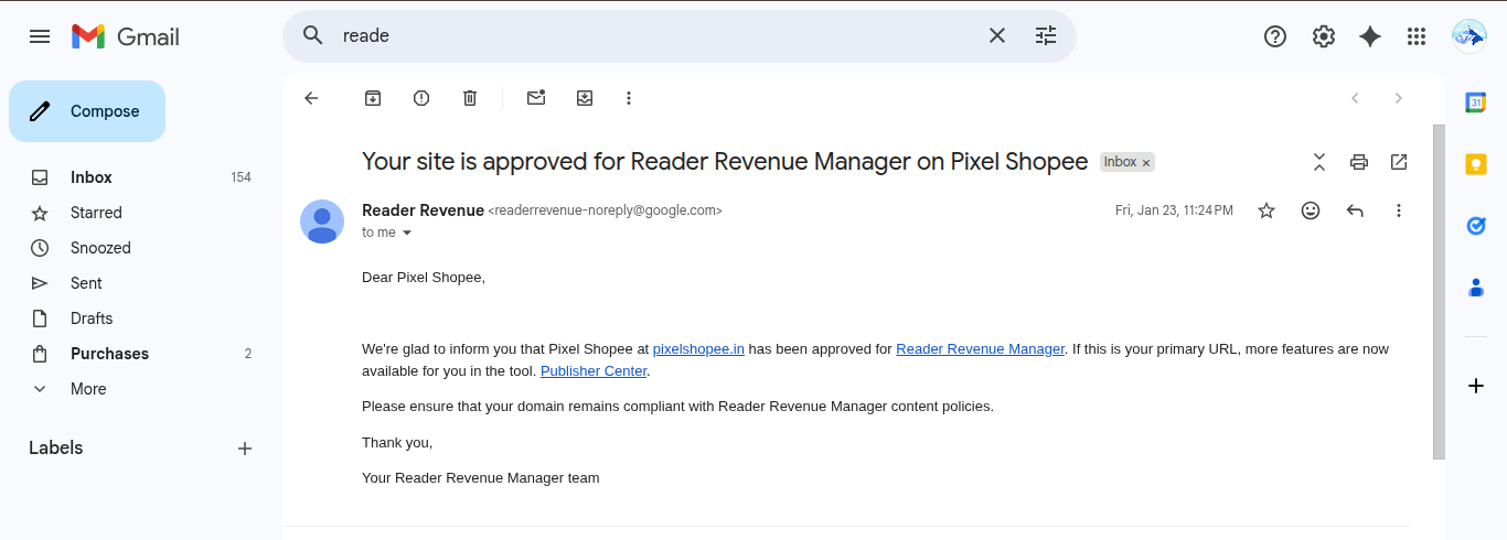 GOOGLE NEWS APPROVED + GOOGLE READER REVENUE APPROVED !!