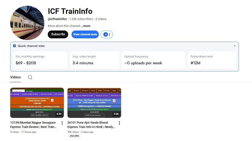 Perfect for anyone looking to start a monetizable train-information niche channel.