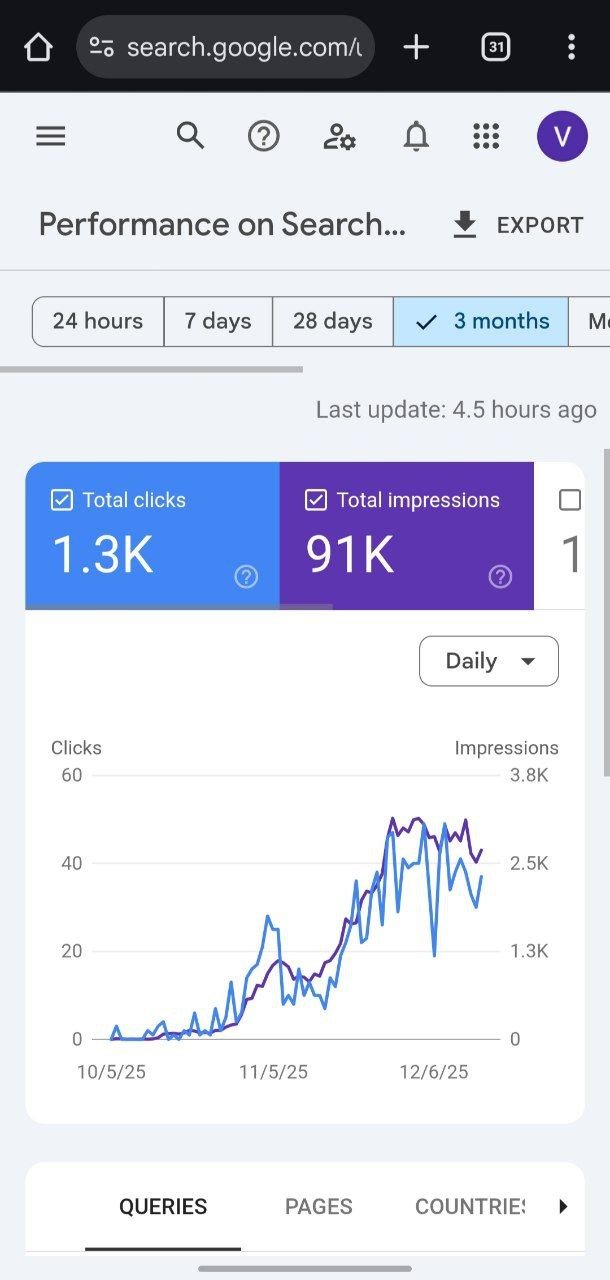 📈 Last 3 months: 91K impressions & 1.3K clicks