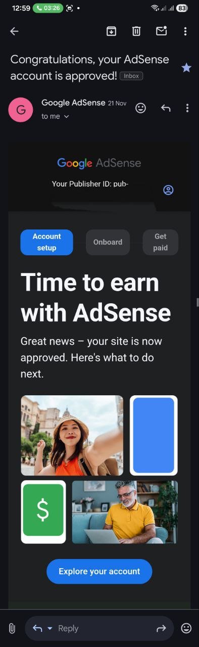 Google AdSense approved website for sale with clean history and real organic traffic.