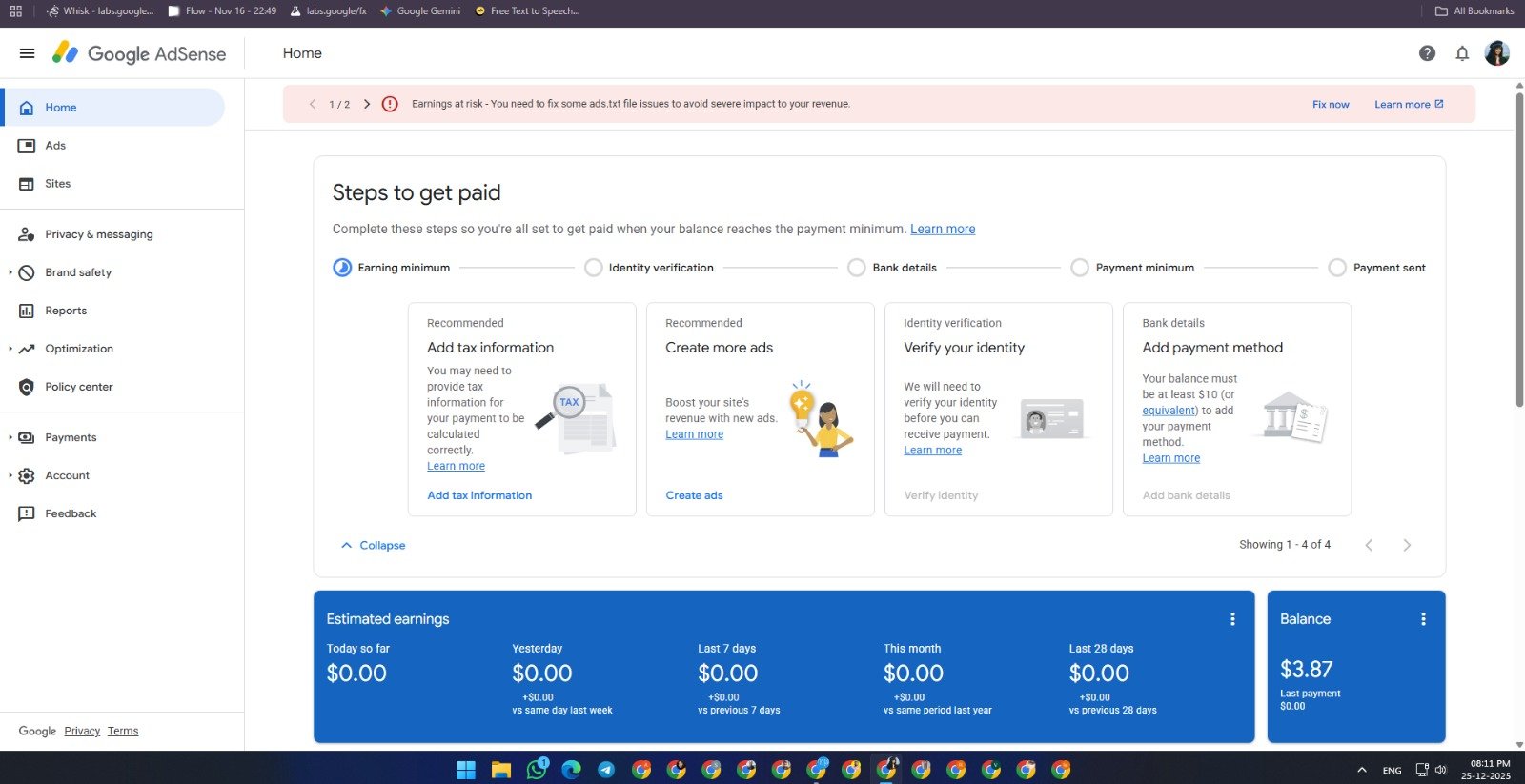 Active AdSense Dashboard Available for Sale | Site Added (Maheshishana.com) | $3 Balance Available