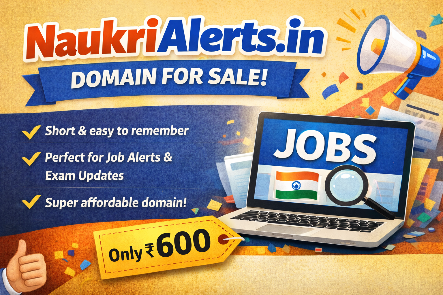 NaukriAlerts.in is a strong, memorable, and India-focused domain that is a perfect fit for job alerts, government jobs, exam updates, and career portals.